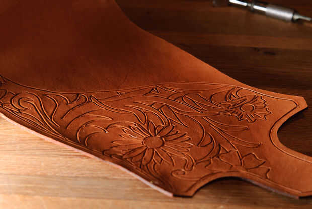 Sí, usted realmente cortar el cuero donde quiera que haya una línea o un borde. No corte a través de todo el camino, pero cortar a mitad de camino. Mi primera piel de herramientas de tiempo, tenía miedo de meterse algo hasta que fui muy poco profundo con todos los pasos... y consiguió un bonito aburrido, plano de diseño. Ser audaz.