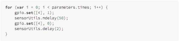 Hay unas cuantas interesantes cosas que ver en ese fragmento. La primera es que estas secuencias de comandos pueden ser parametrizados. Aquí utilizamos un parámetro para especificar cuántas veces en una fila para que suene la campana. En segundo lugar, la configuración de los pines GPIO es simple: sólo especificar un array de los pines para ser fijado y un valor. En tercer lugar, podemos retrasar la ejecución del script para lograr efectos útiles (en este caso, a la espera de la solenoide extender antes de lo que le permite recuperarse). Estas demoras no tienen impacto en el resto de nuestra aplicación, son locales a esta secuencia de comandos.