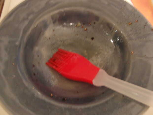 Preparar un plato con aceite de oliva y su elección de aderezo, usé sal y pimienta recién molida.