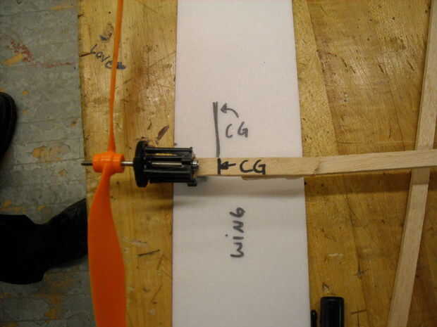 Asegúrese de tomar un minuto y equilibrar el conjunto para encontrar el centro de gravedad. Utilice un rotulador para marcar claramente. Yo sólo uso un pedazo de balsa a actuar como un equilibrio.