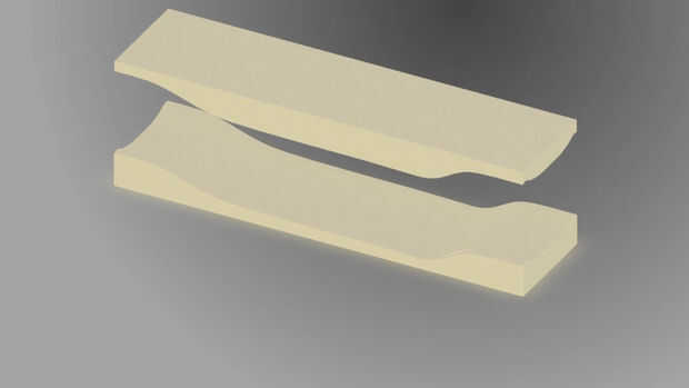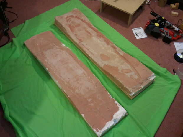 Quería ver si podía construir un monopatín de fibra de vidrio así que necesitaba un molde. Modeló la cubierta para arriba en solidworks (pero google sketchup funcionaría y miles de dólares más baratos [gratis]) desde el modelo virtual 3d he creado un perfil lateral y un perfil superior.  Hice 2 plantillas de cartón desde el perfil lateral y había pegado a los lados de un gran bloque de espuma de poliestireno.  Cartón no quemar o derretir con el alambre de acero inoxidable por lo que hace una gran guía.  Imprimí el perfil frontal o la forma de plato quería la Junta tener y cuidadosamente doblado el cable para que coincidan.  Esto había unido a un cortador de mango y me arrastró a lo largo de las plantillas.