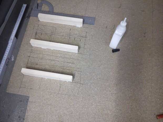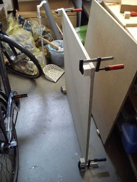 La pared que quise poner que no es recta, hay un conducto que sobresale un poco, así que pegué algunas piezas cuadradas de madera a la parte posterior de los tableros de madera para resolver el problema.