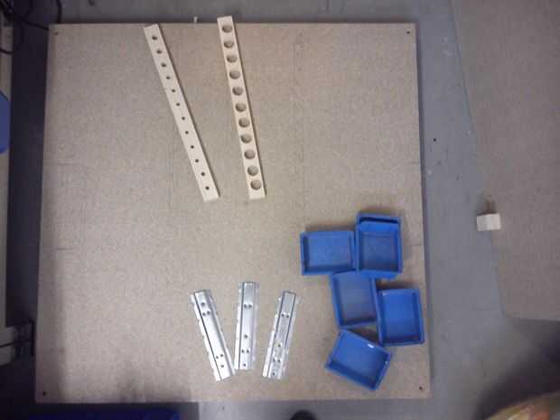 Quería tener las más importantes herramientas y piezas de fácil acceso y muy bien organizadas. Dos piezas de 90cmX90cm de madera aglomerada con un espesor de 16mm donde mi base para eso.