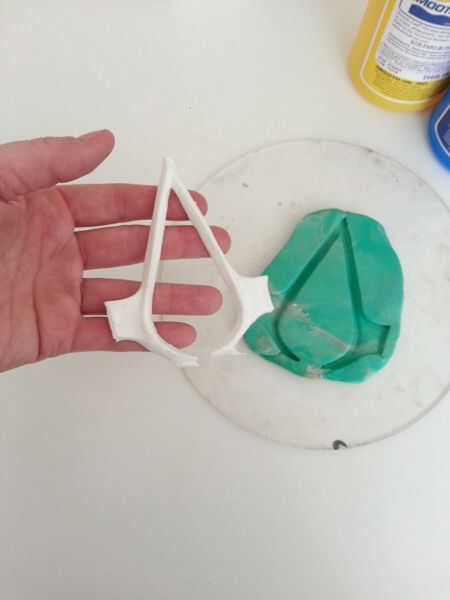 He utilizado Smooth-On líquido plástico - 300 fundido suave. Asegúrese de que tener tazas con medidas sobre ellos y un montón de varas para mezclar. Poner en su equipo de seguridad y medir las dos piezas en cantidades iguales. Con algo tan pequeño, no necesita mucho, para ser precisos con sus medidas. Se comienza a configurar después de unos minutos, así que necesitarás trabajar rápidamente para llenar el molde. Espere 10 minutos y que debe ser totalmente configurado. He intentado lo teñido, pero el color nunca vino a la derecha para este proyecto, pero para otros objetos que podría funcionar bien.