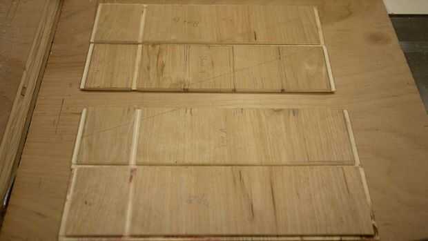 Una cosa importante para recordar cuando se corte la parte superior e inferior - las piezas principales serán imágenes espejadas de los inferiores. Así que corté las tapas con el borde delantero hacia adelante, corté los fondos con el borde posterior, ranurado hacia adelante. Técnicamente, no debería ser una diferencia - pero esto es como la banda de corte que hice antes - utilizando los mismos bloques de parada en la misma posición elimina conjeturas y le protege de cometer pequeños errores al cambiar entre las partes.