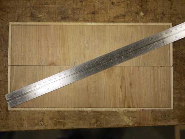 - Elegir una longitud que se puede dividir igualmente por el número de espacios deseados. Quiero hacer 5 espacios iguales, por lo que opté por una línea diagonal 15" de largo.