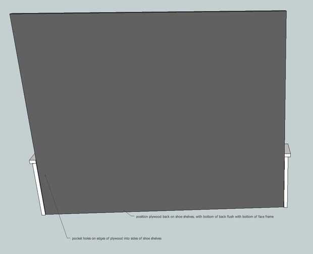 Una vez más, se perforan los tornillos de bolsillo, y las partes fueron atornilladas para que la parte inferior de los estantes estaban al ras con la parte inferior de la espalda.