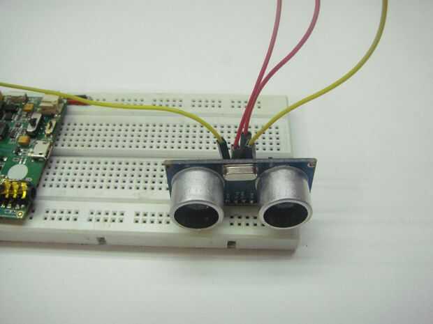 Un ultrasónico mide la distancia con ondas de sonido. Su es un par de transmisor y receptor. El transmisor envía ondas sonoras y parece la de un objeto y se devuelve. La onda de sonido devuelta es recibida por el receptor. Del tiempo, calculamos la distancia. Aquí estaría utilizando lo para medir la distancia y la nota por el timbre de acuerdo a la distancia. Conecte el sensor de ultrasonidos a su Junta Directiva como dijo: