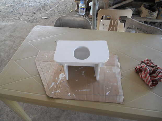 Tenga en cuenta que hice el orinal rígido conduciendo tres clavos a través de la sede (en los agujeros pretaladrados) en los lados.