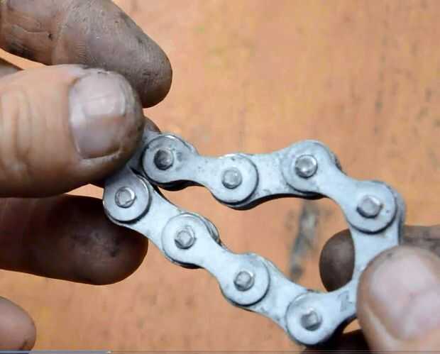 Después de que la cadena está floja puede hace un bucle y vuelva a colocar el perno en los enlaces de las cadenas.