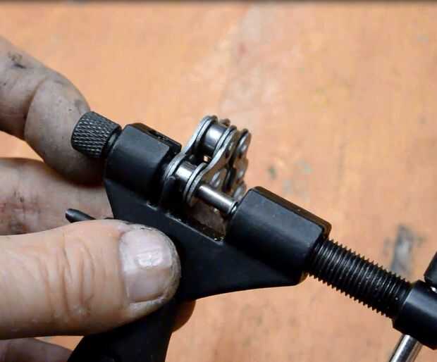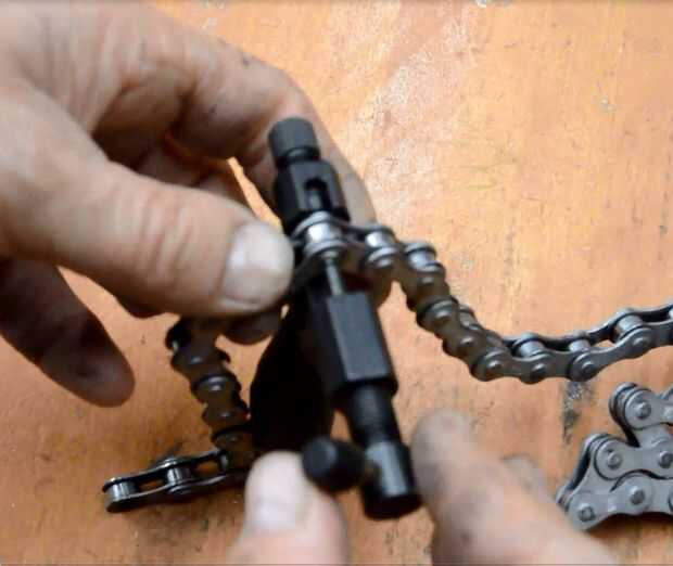 Coloque la cadena en lo chaintool y atornille el perno hacia fuera el eslabón de cadena.