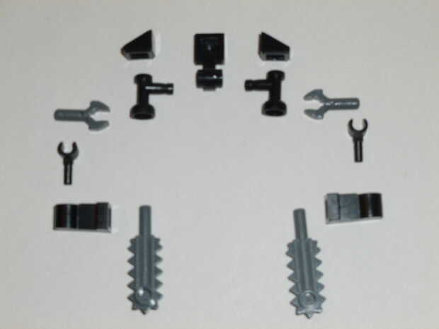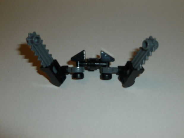 Usted puede ponerlo que quieras en los brazos, armas o incluso las manos si fuese más tranquila. Usé un diseño simple de piezas minifigura con dos cuchillas de la motosierra al final.