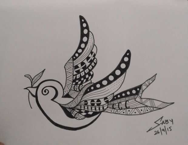 En este diseño Doodle hice el esquema básico con un lápiz Normal de bosquejo y fue tranquila fácil hacer el boceto exterior aves con lo que no es ese diseño complejo para dibujar. Lo que hice en este diseño de doodle del pájaro es que escogí el diseño en dos partes. Qué estaba haciendo en el ala izquierda del diseño del doodle de aves. He intentado que mi mejor dibujarlo igual en el otro lado. Para que se vea similar en ambas alas, se pueden dibujar diferentes diseños demasiado para que se vea más vibrante y lleno de diseños de doodle. :)