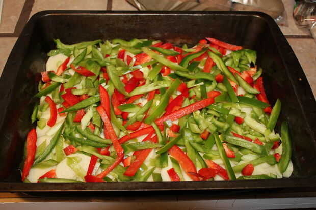 distribuir generosamente tus pimientos surtidos para el realce de color máxima