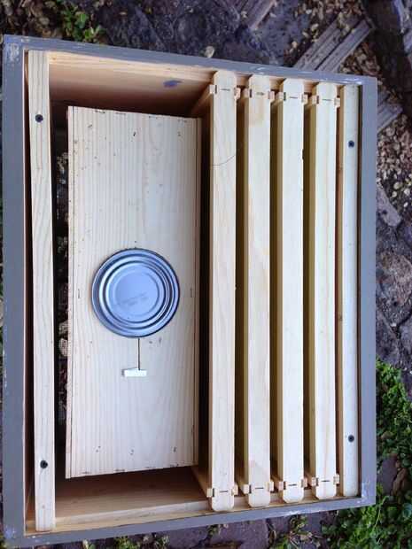Una vez que el paquete está en la colmena, haga palanca en el poder desde el centro, hacia arriba y fuera del paquete. Hacer esto lentamente, muchas abejas se cuelga de la lata, y las abejas son muy delicadas a pesar de su reputación duro. Coloque la lata a un lado para el uso más adelante, asegurándose de configurarlo para que no salga el jarabe.