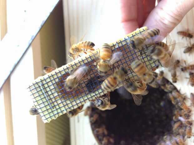 Verás en la jaula de la reina suele haber un clip metálico conectado en el lado. Llegar y sacar de la jaula de la reina. Tómese su tiempo para admirar a su nueva reina. Algunos criadores de Reina marcan a sus reinas y si tu Reina no es marcada para obtener un buen vistazo a ella, porque más adelante tendrás que le punto entre sus abejas obreras.