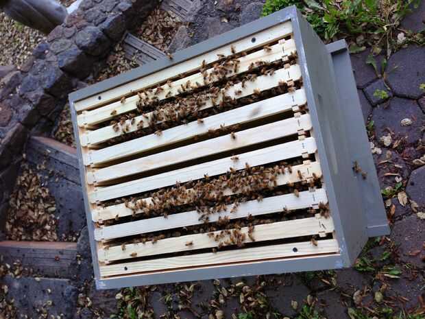 Mejor aún es usar tableros de seguidor para empezar una nueva colmena. Entonces la cantidad de espacio en la colmena es igual a la cantidad de espacio que pueden llenar las abejas, es mucho más fácil para ellos tienden a cuidar de la vida diaria en la colmena. Para esto Coloque cinco fotogramas en el centro y sus tablas de seguidor a cada lado y los alinee con apertura de entrada. (Te darás cuenta de la imagen con que Marcos en cada borde hay tiras más pequeñas-son tableros seguidor.) Si utiliza placas de seguidor, asegúrese de comprobar regularmente atrás y ampliar el tamaño de su espacio de la colmena mediante la adición de nuevas tramas en el medio como las abejas construcción.