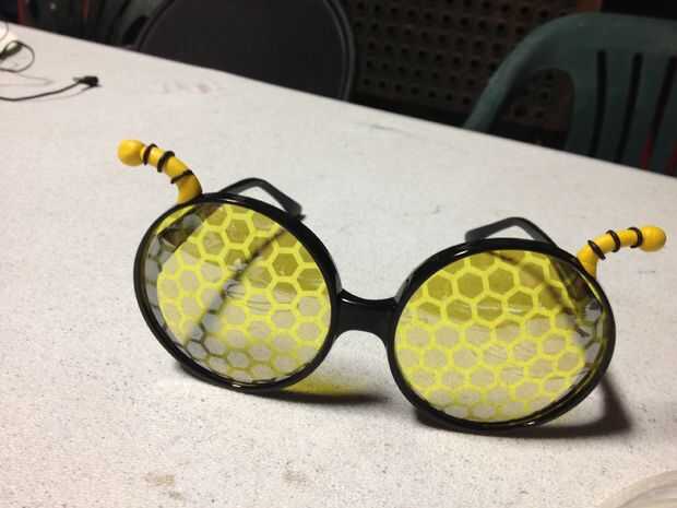 Esculpió pequeñas antenas y añadido a las gafas de sol voy vistiendo con mi abeja reina traje de Halloween. Primero en forma les y unido a ellos, más tarde añadí pequeñas rayas negras. Me gusta el toque personalizado!