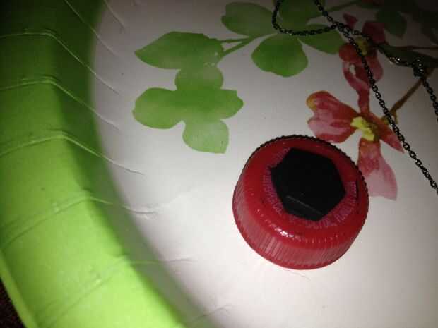 Necesitaba un hexágono en forma de sello de goma para poner algún detalle en mi traje de la abeja reina, usé algunos Sugru sobra y una tapa de la botella. Puse una gota de Sugru en la tapa, uno plano y cortar la forma con un cuchillo.