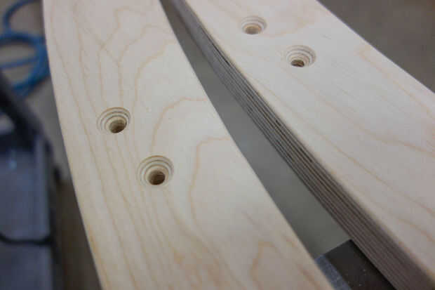 Por último, utilicé un avellanado de la broca en un lado de cada corredor, en cada agujero, para permitir que la cabeza plana tornillos para sentarse al ras cuando se monta el gato oscilante.