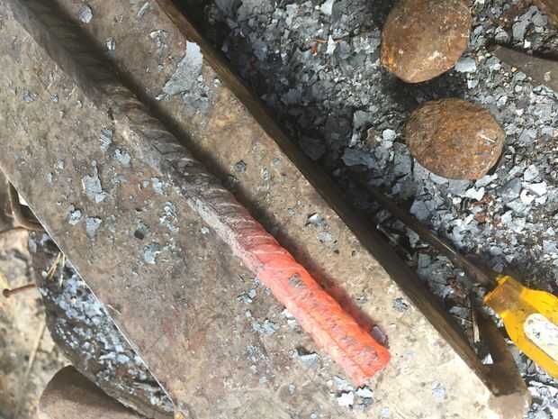 Nada demasiado complicado aquí. sólo molesta ligeramente, las últimas dos pulgadas de las barras para conseguir un poco más ancho de ellos. Deben ser suficientemente pesado que usted puede solo golpe "em en te yunque cara unas cuantas veces.