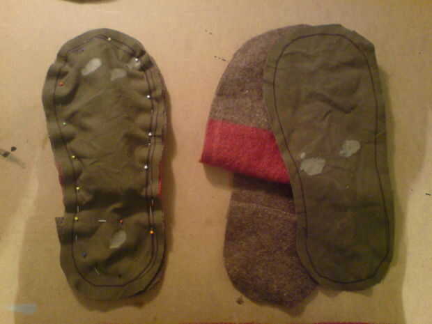 Un par de zapatillas de una manta de lana fino y caliente (3 / 6 paso)