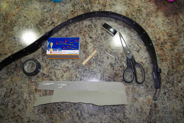 -una caja de cerillas (mayor - aprox. 750 ct) -chatarra de cartón (fina) -tijeras -cinta eléctrica -un cinturón de -los partidos (grandes o pequeños) -clothespin(s)