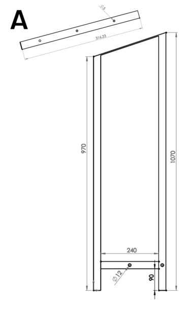 B - corte y soldadura de Perfil de acero de 20 * 20 m m para el paso y 30 * 20 para las piernas interiores como se muestra en la imagen.