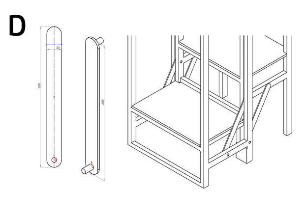 A - se utilizó madera de caoba de 10mm para los dos pasos, cortados a la medida.