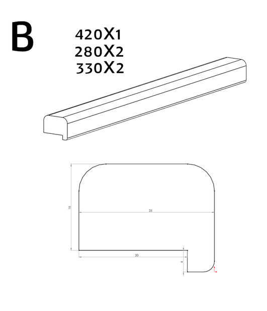 B - los rieles también fueron hechos de caoba, 20 * 25mm con adges redondeado, corte a la longitud.