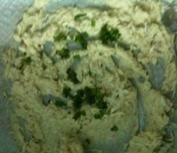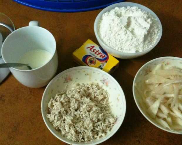 Hacer la salsa blanca - hervir 1 taza de leche 1 cebolla finamente picada y 1 diente de ajo... deja que se enfríe