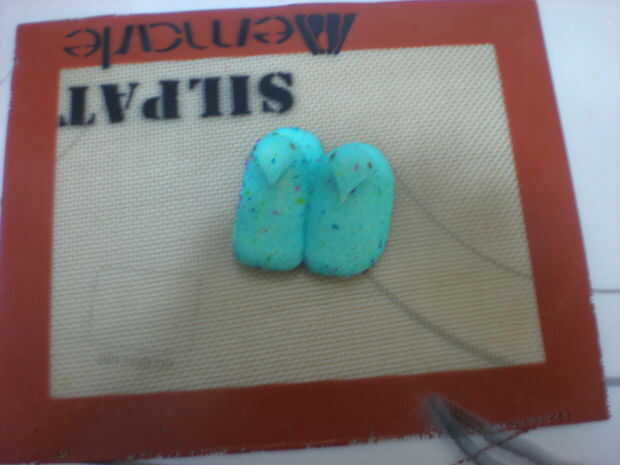 Después de que haya terminado con la parte de brûlée inmediatamente puso el huevo en la nevera. Una vez que ha hecho llegar 2 píos de cualquier tipo te gusta. Poner el en el microondas durante unos 10 segundos. PRECAUCIÓN: se trata de azúcar caliente! Tenga mucho cuidado de esta parte! Una vez derretido poner un toque de agua sobre sus dedos y el palo el derretimiento se asoma sobre el huevo.