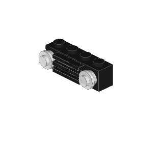 Ahora necesitas un ladrillo de 1 x 4 con 4 pernos en el lado. En los dos postes de madera mediados, coloque una parrilla negro 1 x 2. Poner dos círculos claros de 1 x 1 en los otros dos y coloque este conjunto sobre la viga saliente. Se trata de la parte delantera.