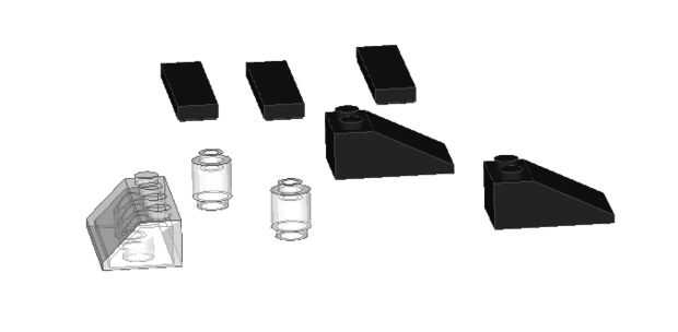 Para este paso necesita un 2 x 4 inclinada pieza, dos cilindros de claro de 1 x 1, tres 1 y x 4 plana rematada, inclinada dos de 1 x 3 piezas. Colocar los 2 x 3 inclinado de nuevo dos pernos, así que hay un montante de colgando. Luego, coloque los cilindros de delante de los, uno a cada lado. Colocar la pieza inclinada de 2 x 4 frente a los cilindros. Para terminar este paso cubre todos aquellos con los pedazos.