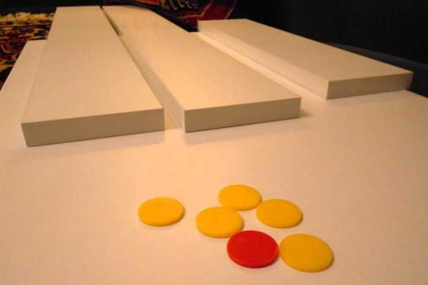 -7 blanca tokens (botón, moneda, disco de plástico, símbolo de ruleta) y 1 blanco uno. O cualquier otro color, en sistema de 7 + 1.