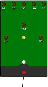 Bola puede comenzar sólo desde el punto de partida. La bola roja (token, por supuesto) debe estar en el campo de juego siempre que sea posible; el apuntar se hace siempre con ella y cuando cayó en un agujero, inmediatamente hay que ponerlo en el siguiente objetivo. Su valor duplica el valor del agujero cuando se embolsó. El jugador está en juego mientras que él (o ella) puede bolsillo tokens. Cuando el jugador quiere salir de la actual ronda con sus puntos, es posible sólo que del caso, si hace un contacto sin meter, en este caso el oponente viene a jugar. El objetivo es ser el primero que recogió los puntos necesarios (esto es objeto de un acuerdo, determinamos normalmente en 250). Cuando un jugador en sus redondos ha embolsado pero no logra hacer un contacto en el extremo, se murieron sus puntos en esa ronda. Cuando hits la seta y puntas para arriba, todos los puntos del jugador se murieron! Cuando alguien no puede hacer un contacto y no ha embolsado en una ronda, que debe terminar esa ronda, y el oponente viene. Cuando alguien quiere salir con los puntos ganadores necesarios, es posible, cuando él (o ella) puede hacer un contacto final. En algunas empresas este golpe final sólo es válida con el uso de la bola roja. Cuando todas las bolas sobre la mesa, el jugador debe recoger la bola más cercana desde el punto de partida para apuntar. Cuando una bola trata de detrás detrás de la línea de base, el jugador Lost sus puntos en esa ronda.