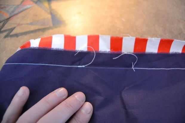 para cerrar la abertura coser una vez alrededor de la abertura de la bolsa cerca del borde. luego coser costura otra 3 cm del borde.