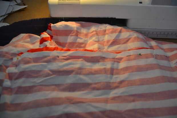PIN y coser las dos piezas a lo largo de lo 66 cm de largo redondo lado abierto, dejando 5 cm largo apertura.