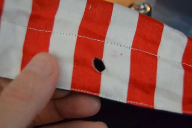 marca ahora donde los ojales se encenderá esa amplia tira de 3 cm entre las costuras: queremos 10 ojales, que es uno cada 6,6 cm.