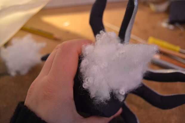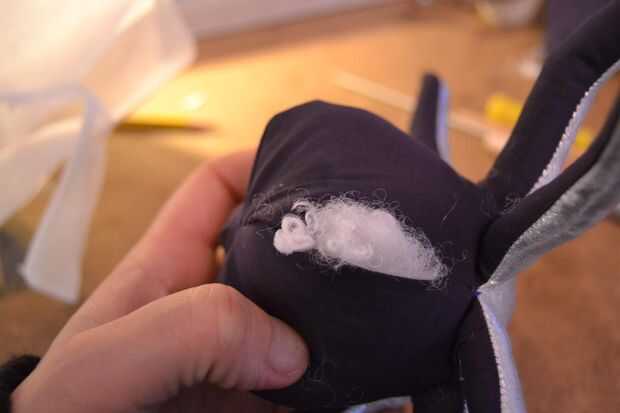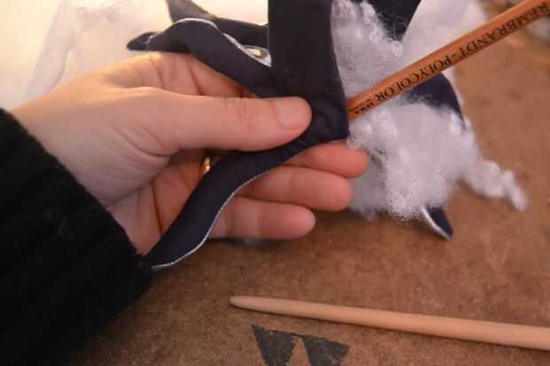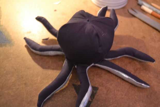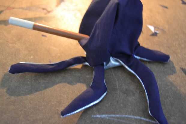 Ahora tienes que rellenar el pulpo, empezar con los tentáculos y, otra vez con la ayuda de cosas pen cada tentáculo hasta que frim bastante a tu gusto. luego llene el resto del cuerpo. puede que necesite mucho para llenar lo que podría esperar. una vez hecho el relleno cose la abertura cerrada con la mano.