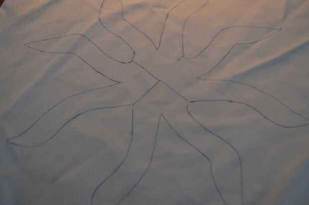 primero se debe coser las partes del 4 cuerpo juntos: coser las 2 piezas juntas en un lado de la marca a la punta en la parte superior, luego coser la tercera parte a la segunda por un lado, y la tercera a la cuarta. luego tienes que coser la cuarta a la primera pero ahora tienes que dejar una apertura de unos 4 cm (ver imagen) a través de la cual se rellena el pulpo. usted tendrá que coser esa apertura cierre a mano en el final.