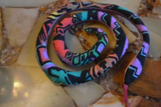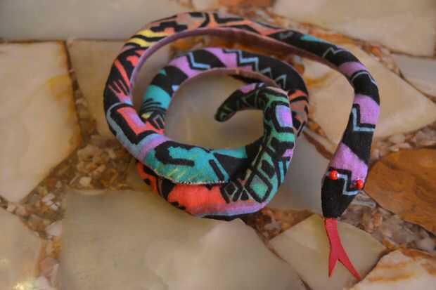 A diferencia de los otros patrones, el patrón de la serpiente ya incluye un margen de la 0.7 cm, el ancho de los pies de la máquina de coser. cortar el cuerpo de una vez de la tela que desee para la parte superior y una vez de la tela para la parte inferior. Si lo desea, también puede usar a la misma tela para la parte superior e inferior. Cortar una lengüeta de la tela no se deshilache, lo hice sólo whitout un patrón, debe ser alrededor de 3 cm de largo. la serpiente fue por lejos el más difícil de cosas siendo tan de largo un estrecho, tómese su tiempo con este!