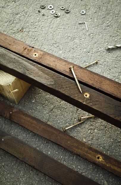 Para determinar la posición exacta de los tornillos que como primeros agujeros en las varillas a la altura correcta, luego coloque los postes en la bisagra y marcar la posición del agujero con un clavo. Es mejor hacer los agujeros estrechos antes de atornillar los tornillos de la bisagra, para evitar las grietas.