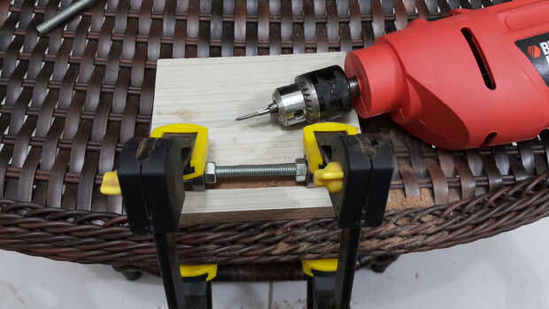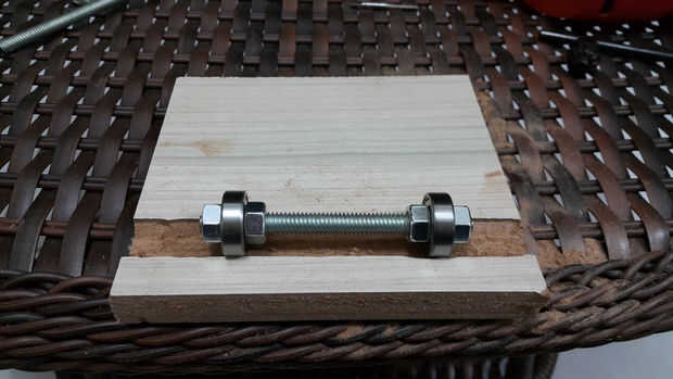 Cómo este paso depende de los recursos disponibles. En mi caso usé un pedazo de chatarra MDF tenía alrededor y un par de pinzas de madera. Si este es tu caso entonces el molino de un canal en la superficie MDF con la herramienta dremel, coloque los cojinetes sobre el canal y sujete firmemente.