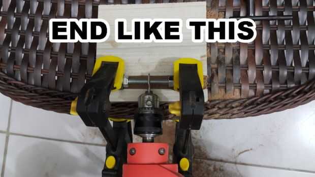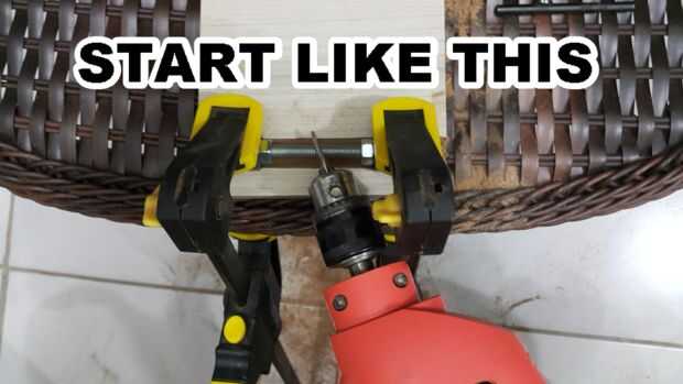 Después de 30-40 segundos los hilos de rosca del perno de comenzará desapareciendo, cuando esto sucede start mover el taladro y grifo más cercano a un ángulo recto (90 º) del perno. Ir a ángulo recto como sea posible sin dejar el tornillo de giro.