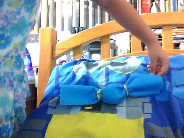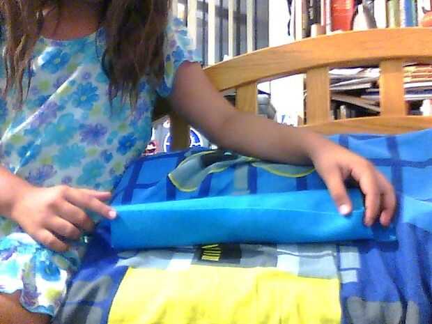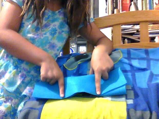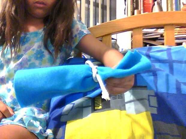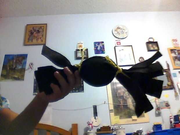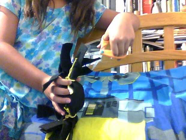 6.You estamos casi listos! Debe haber tres secciones. Cortar la primera sección en tiras que se conectar al juguete. Lo mismo al otro lado y listo! : D Debe tener este aspecto