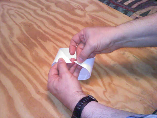 El doblez de la montaña que corre hacia la cola automáticamente provee la incidencia del elevador es necesaria equilibrar perfectamente el peso de la tira doblada, la fricción y la tensión de la tapa Sujete el anillo cerrado sin ningún pegamento o cinta, y la combinación de más peso en el centro y la curva hacia arriba fuertemente estabiliza la vela con la parte más larga en la parte inferior y las puntas se unieron en la parte superior. Lanzar suavemente, manteniendo en el anillo de borde de ataque o por punto de la cola, y desplazamiento hacia adelante y un poco hacia abajo, la velocidad como si tirar un taco de papel a una cesta de una yarda o dos distantes. El planeador debe deslizarse entre quince y veinte pies de altura de la cabeza con este lanzamiento. Si usted puede arreglar para lanzar uno desde una ventana alta, un mirador, etc., este diseño puede deslizarse unas manzanas y generalmente volarán directamente si no hay mucho viento para disturbar el planeo.