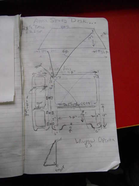 Curiosamente, no encontré ningún Instructables otros usando este método (bisagras, juntas de tenion y cierres) para construir cualquier cosa, por lo que puedo haber encontrado algo nuevo! (Ikea, me llaman. Necesito un trabajo donde no disparan cohetes y morteros en mí, y no hay molestos "General orden número uno..."). El escritorio nuevo fue basado libremente en mi dibujo original, pero me gusta pensar que estas más como una guía...