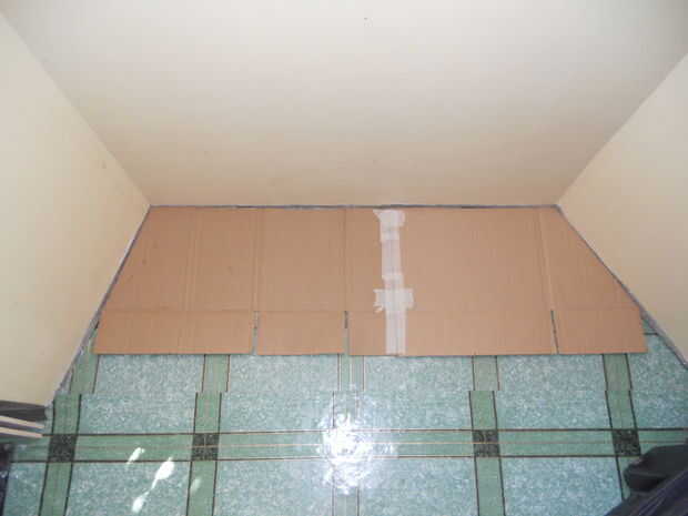 Entonces hice una plantilla de la abertura que iba a colocar el escritorio en sólo para asegurarse de que la geometría del escritorio era correcta. Unos trozos de cinta y algunos desechos cartón, con algunos trabajos de corte de caja rápido y SHAZAM!