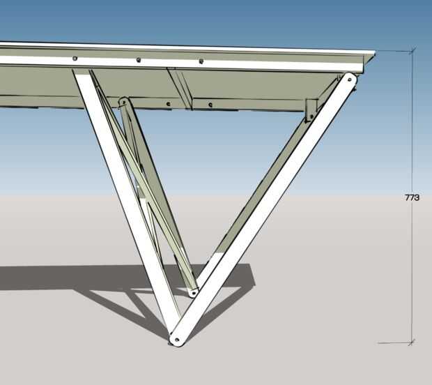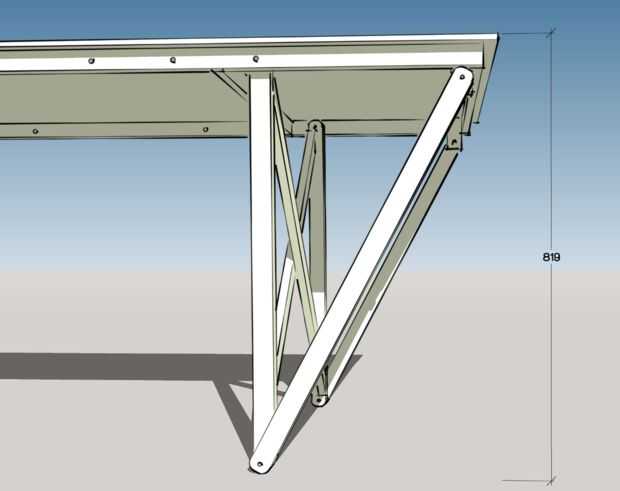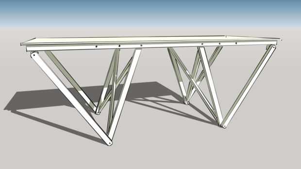 Como veis en los últimos planos, cambiando los agujeros de conexión hace posible variar la geometría y el estilo, y la tabla cambia altura de aproximadamente 77 a 82 cm. Si lo desea puede probar nuevas geometrías añadiendo más agujeros.